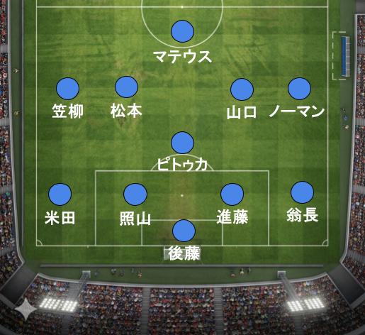 後半61分の選手交代を機に、システムを4-1-4-1へ変更。これが功を奏しました。投入直後のノーマン選手は、スピードを活かした裏への抜け出しで躍動。「何かを起こしてくれそう」という期待感をスタジアムに抱かせます。この試合のチーム初シュートも放ちました。